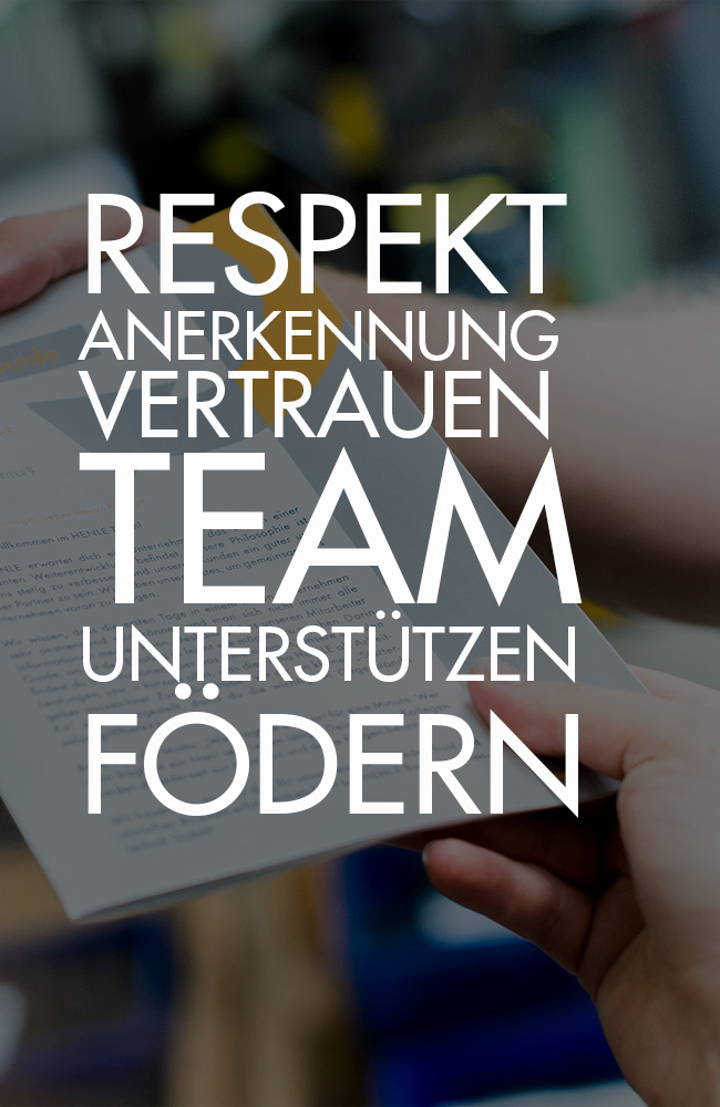 Die Basis für die Zusammenarbeit unserer Mitarbeiter ist das gegenseitige Vertrauen, die Anerkennung und die Wertschätzung des Einzelnen. Wir fördern die Entfaltung der Persönlichkeit unserer Mitarbeiter und die Aktivierung ihrer persönlichen Ressourcen.